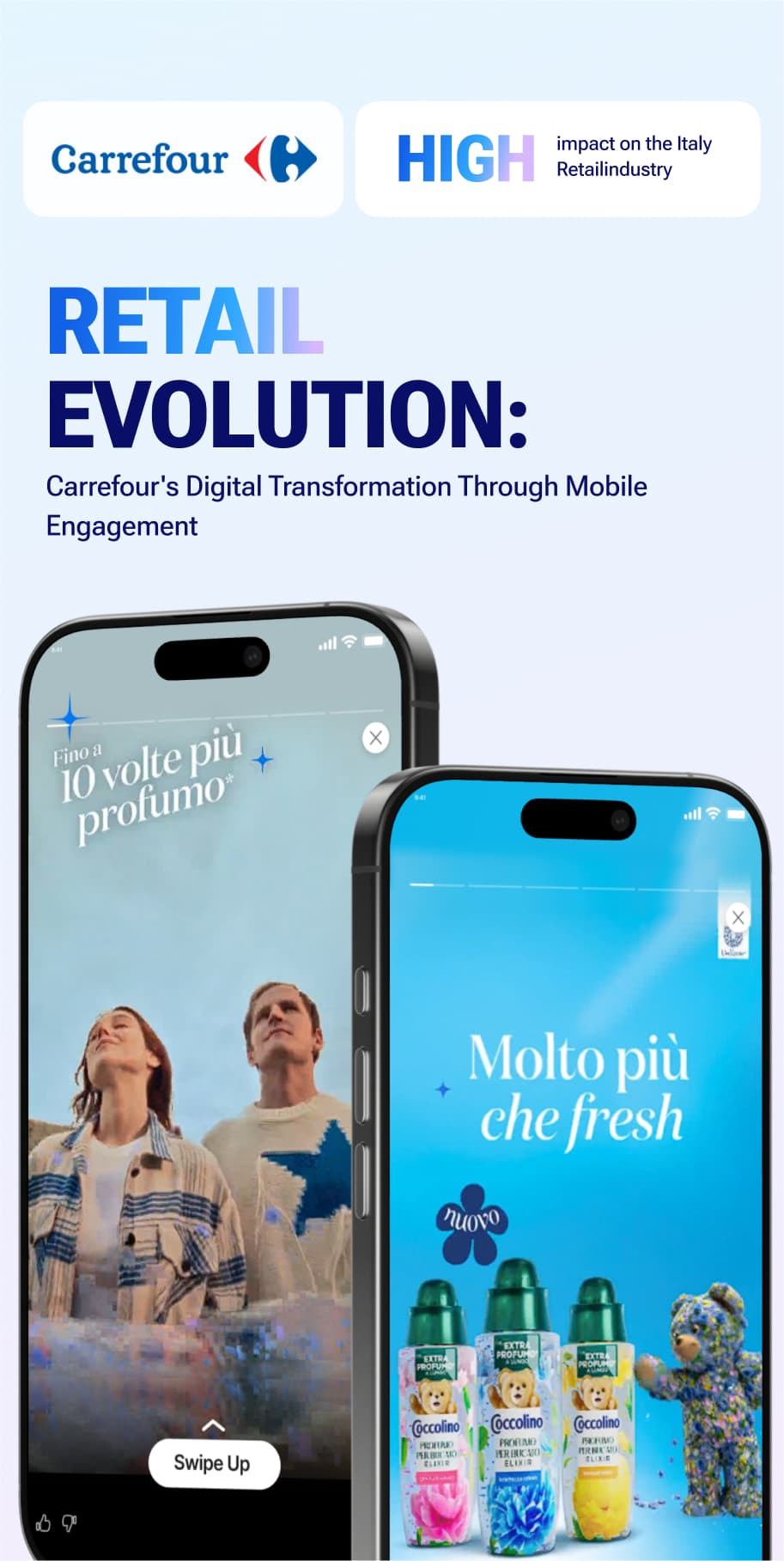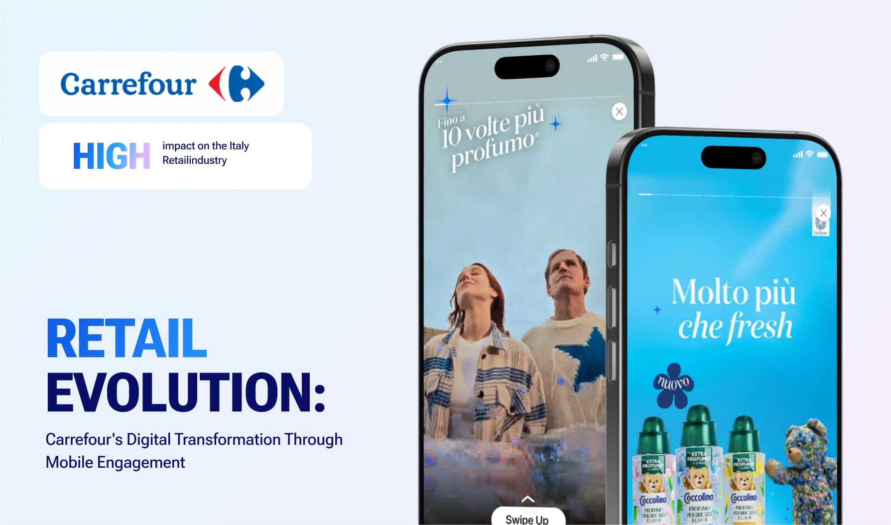 Для усиления вовлечения и коммуникации с клиентами Carrefour Italy интегрировал InAppStory и добавил в приложение интерактивные сторис в «социальном» формате. Цель была понятной: повысить вовлеченность, сделать бонусную программу заметнее и оживить сезонные кампании.