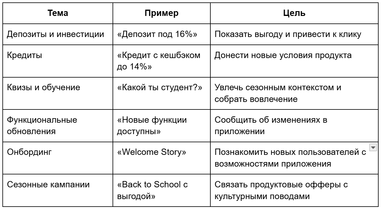 Часть историй была разработана совместно с креативной студией InAppStory — это помогло адаптировать формат под бренд и продуктовые приоритеты банка.