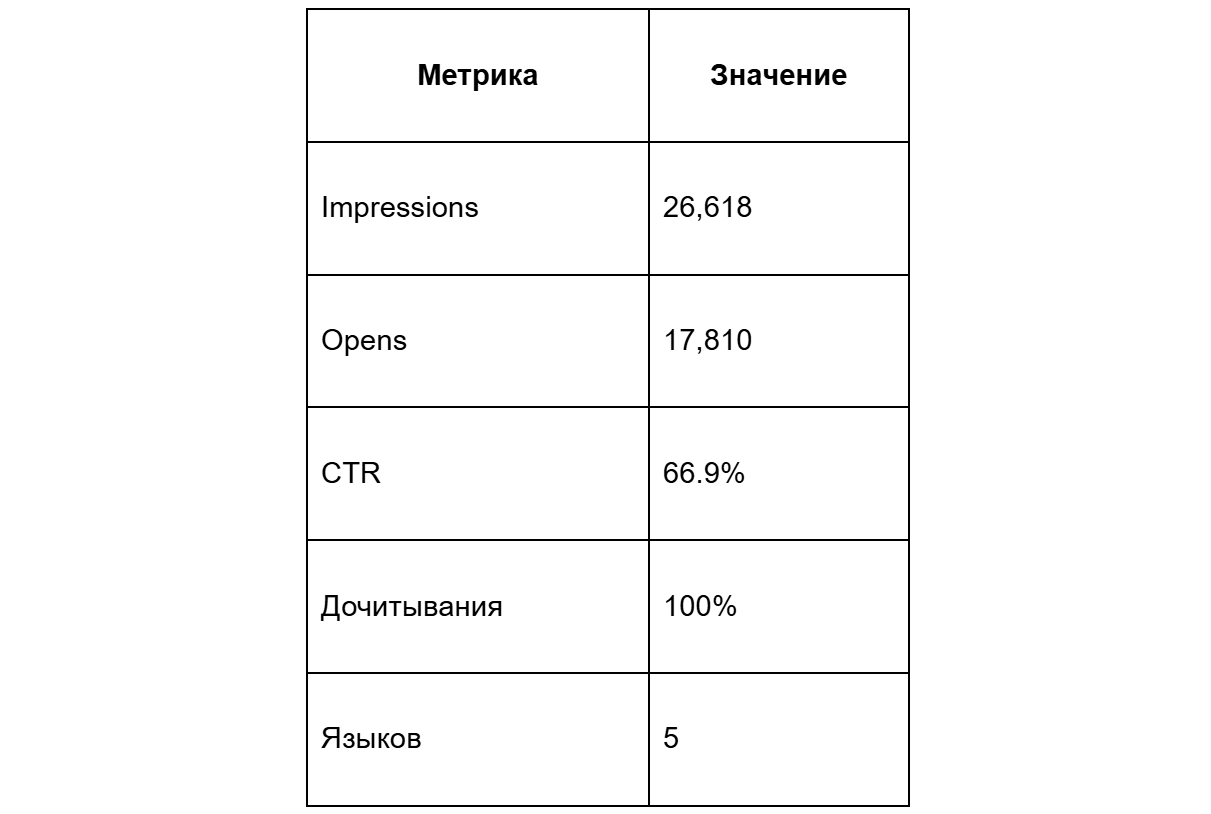 Каждый пользователь, который открыл сторис, досмотрел её до конца — формат был лёгким, личным и эмоционально значимым.