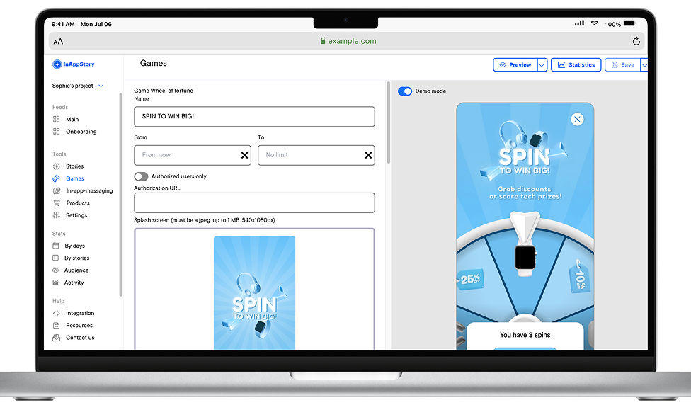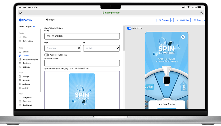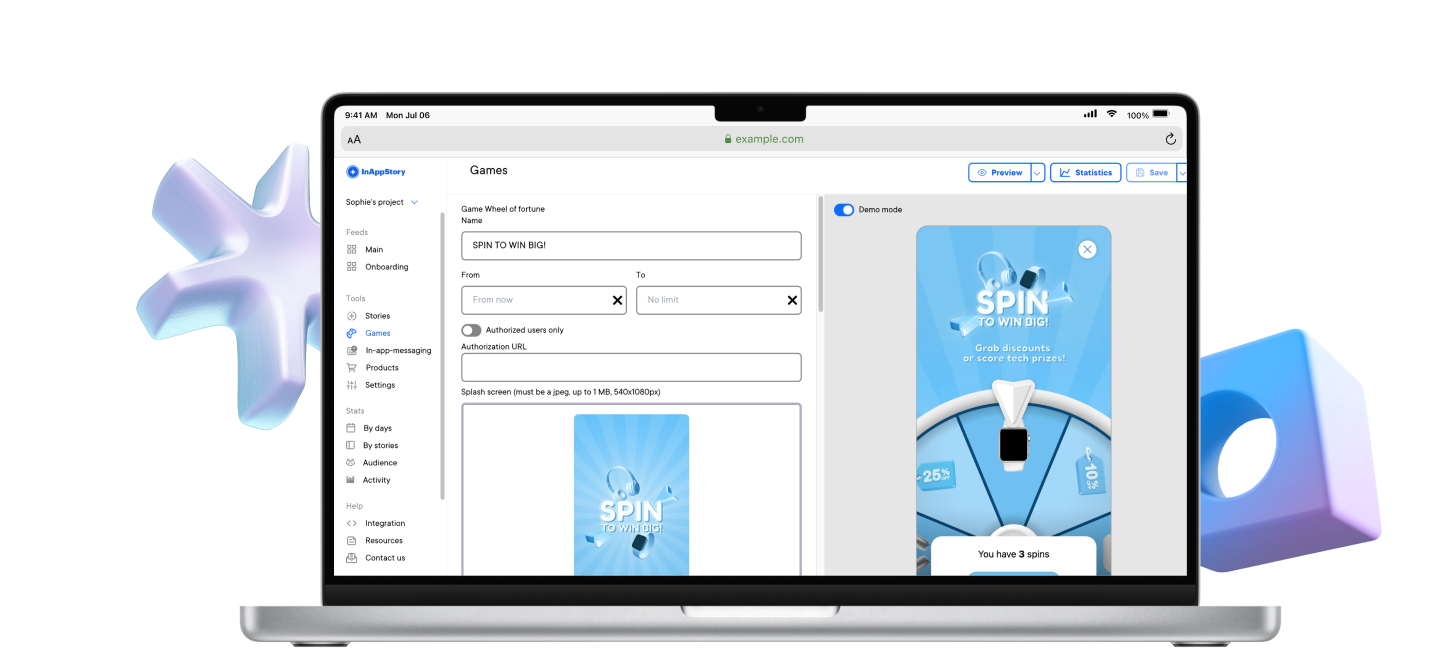 Добавьте фирменный стиль, настройте механику и детали игры без разработчиков. Это быстро и удобно