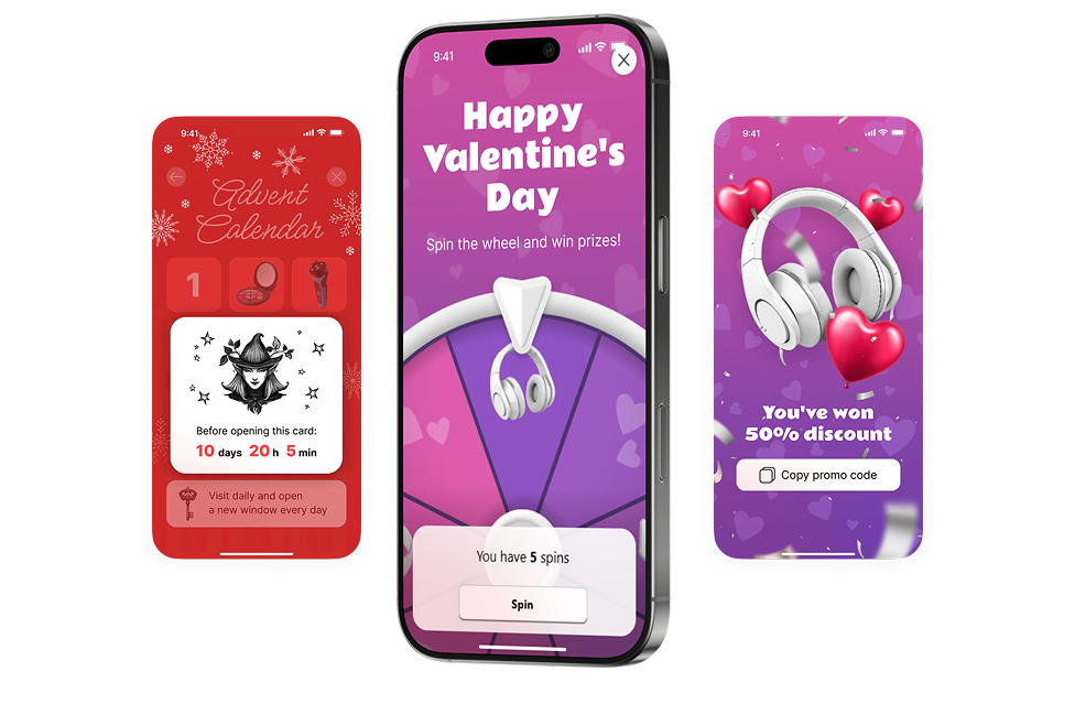 Быстрая победа нравится всем. Запускайте Колесо фортуны, Лутбоксы и Шейкер, получайте мгновенную реакцию и рост монетизации. Для длинных кампаний подойдет Адвент-календарь: ежедневные призы возвращают пользователей, формируют ожидание и лояльность