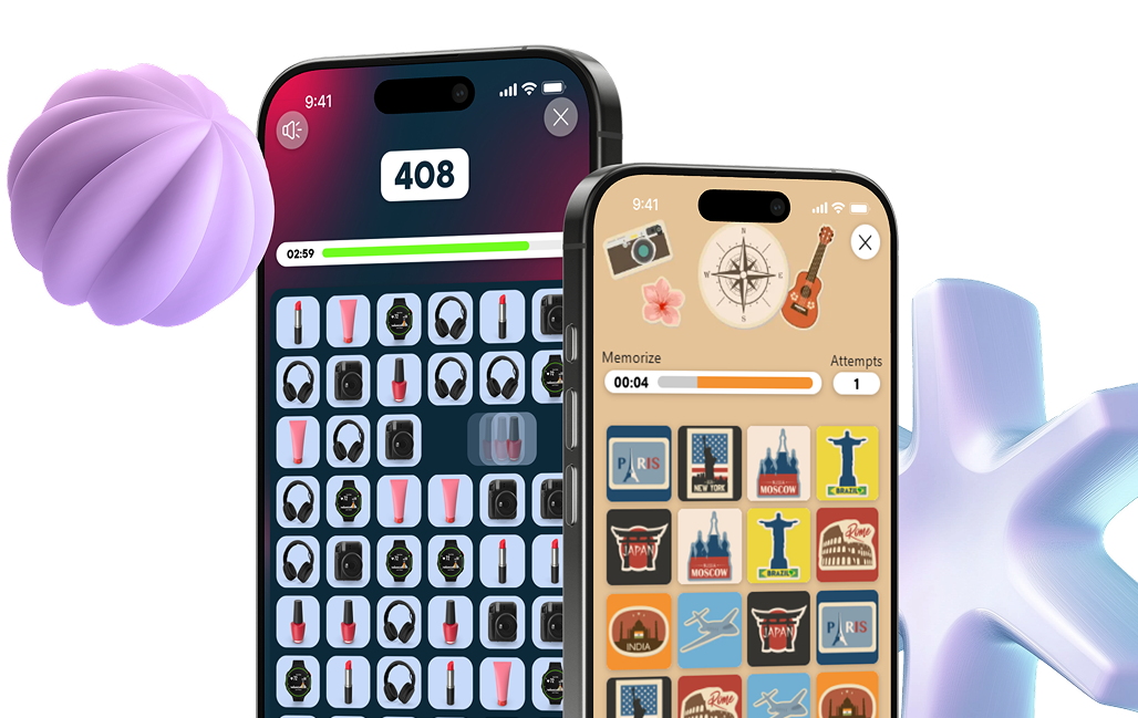 Пазл, Мемориз, Три в ряд и Фрут Ниндзя заставляют думать, планировать и возвращаться снова. Используйте их, чтобы раздавать промокоды, анонсировать акции и подталкивать пользователей к нужным действиям. Повышайте конверсию, удержание и интерес к бренду