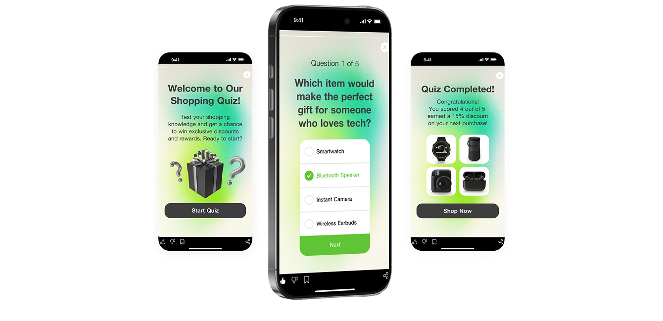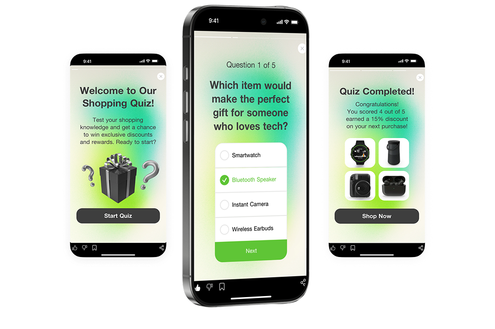 Квизы и квесты знакомят пользователей с вашим сервисом и ключевыми преимуществами бренда. А сценарии с мгновенными наградами и обратной связью повышают вовлеченность и удержание