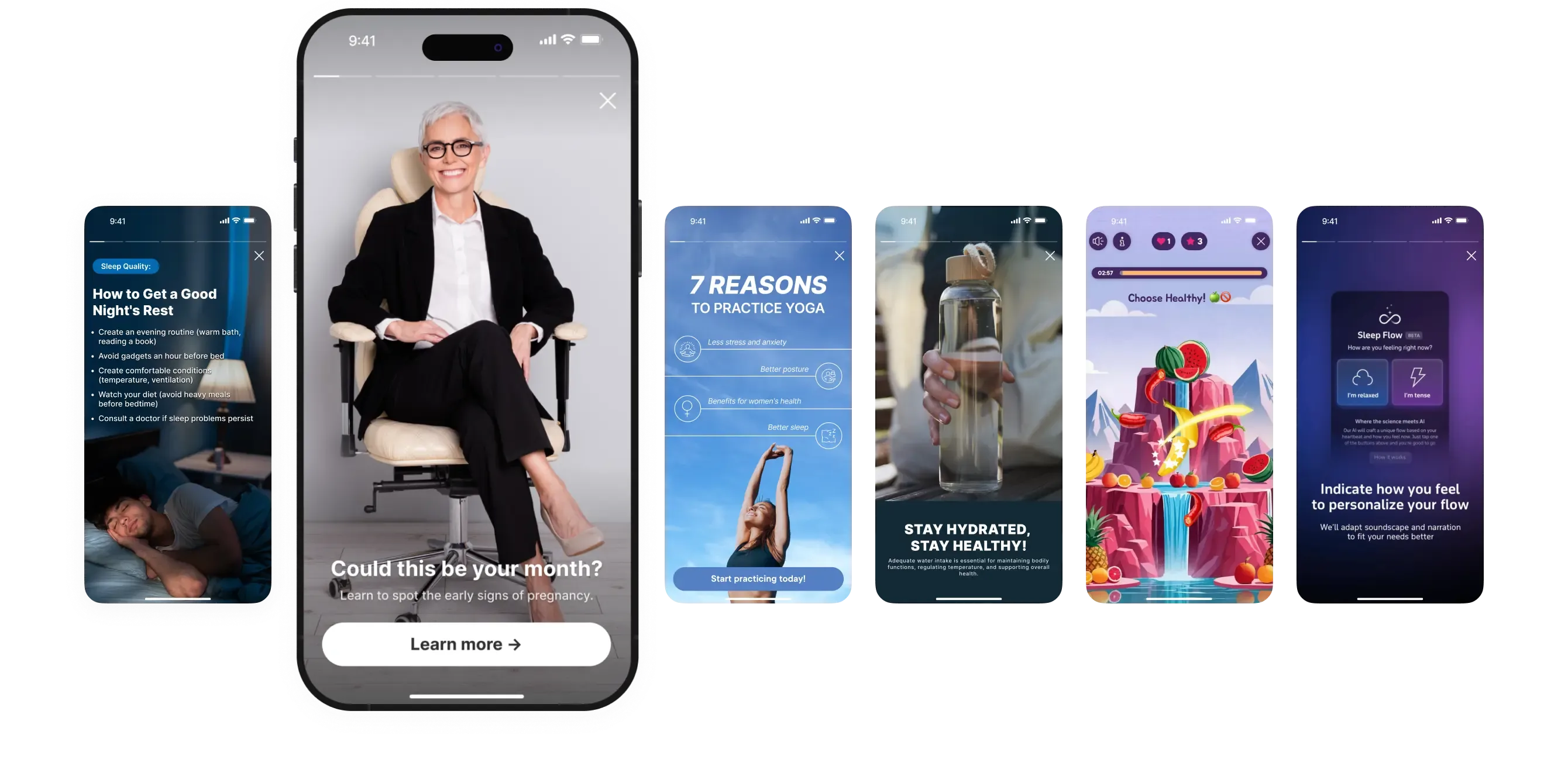 Интерактивный контент проводит пользователей по ключевым шагам, демонстрирует ценность сервиса и мотивирует формировать более здоровые привычки